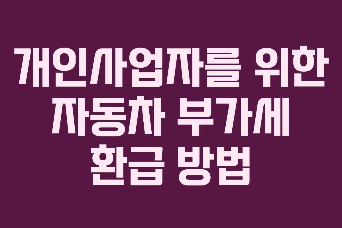 개인사업자는 사업 운영을 위해 자동차를 구입할 때 부가세 환급을 받을 수 있는 기회를 가집니다. 특정 조건을 충족하는 차량에 대해 구매가의 10%를 환급받을 수 있으며, 이는 사업 운영에 큰 도움이 됩니다.