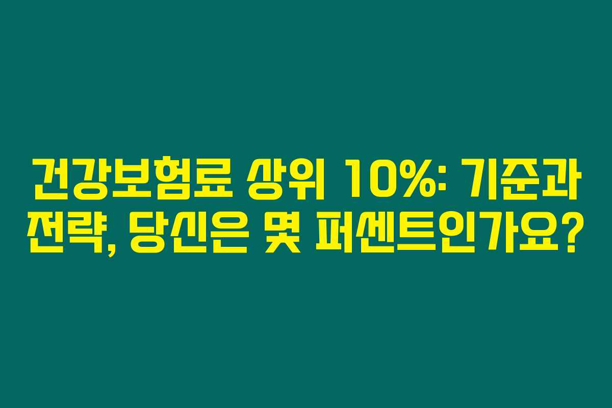 건강보험료 상위 10%는 최근 12개월 동안의 평균 보험료 납부액을 기준으로 하여, 전체 가입자 중 상위 10%에 해당하는 사람들을 지칭합니다. 매년 국민건강보험공단과 보건복지부에서 발표하는 이 기준은 주목할 필요가 있습니다.