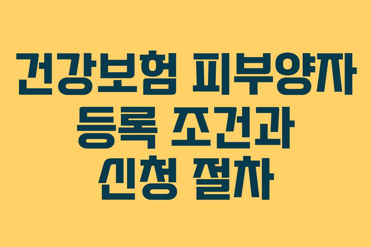 건강보험 피부양자 제도는 소득이 없거나 적은 가족 구성원이 직장가입자의 보험에 편입되어 보험료 부담 없이 의료 서비스를 이용할 수 있도록 돕는 제도입니다. 이 글에서는 피부양자 등록 조건과 신청 절차를 자세히 안내드립니다.