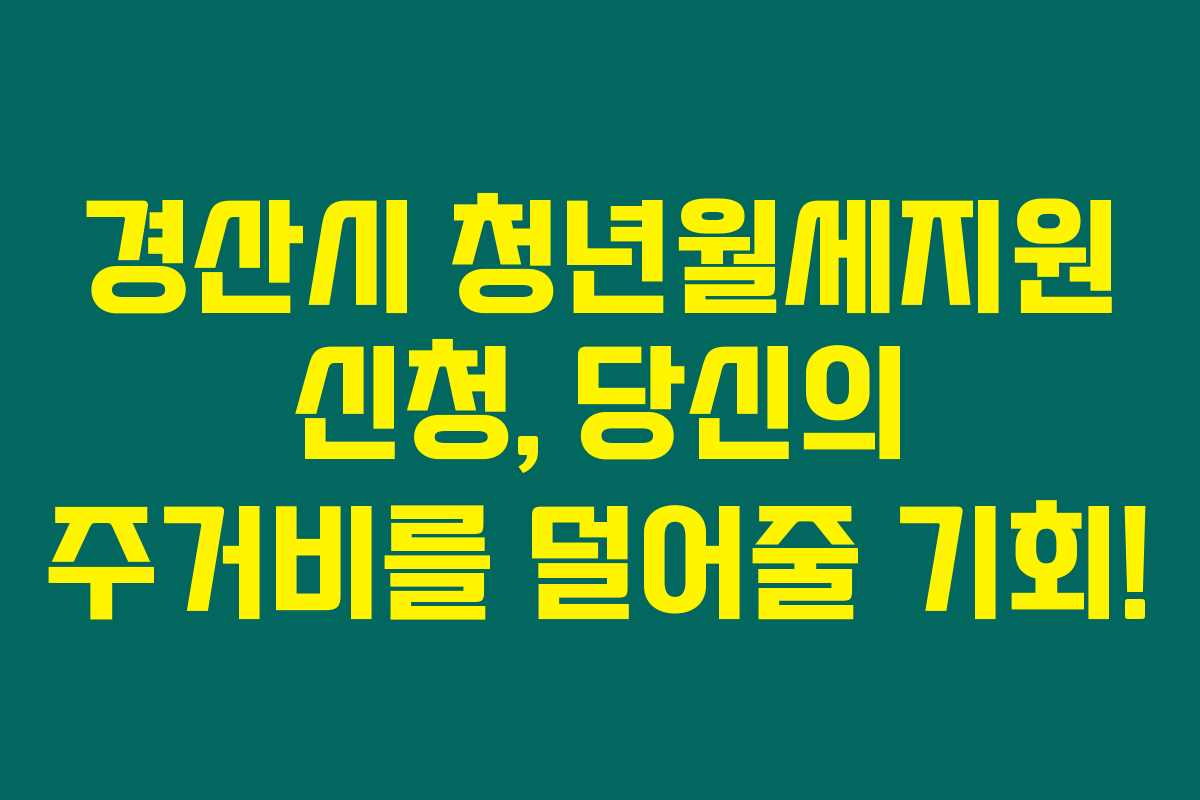 경산시 청년월세지원 신청, 당신의 주거비를 덜어줄 기회!