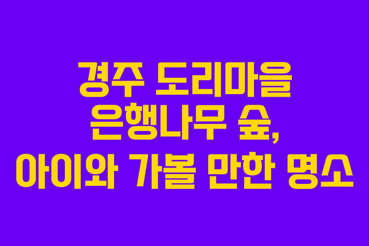 경주 도리마을 은행나무 숲은 아이들과 함께 즐기기 좋은 장소로, 아름다운 자연과 다양한 시설이 마련되어 있습니다. 가족과 함께 즐거운 시간을 보내시기 바랍니다.