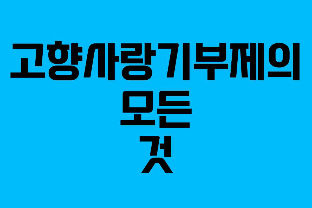 고향사랑기부제는 개인이 본인의 주민등록등본 상 거주지를 제외한 지역 자치단체에 기부하는 제도입니다. 기부금은 해당 지역의 주민복리를 위해 사용되며, 이를 통해 지역 발전에 기여하게 됩니다.