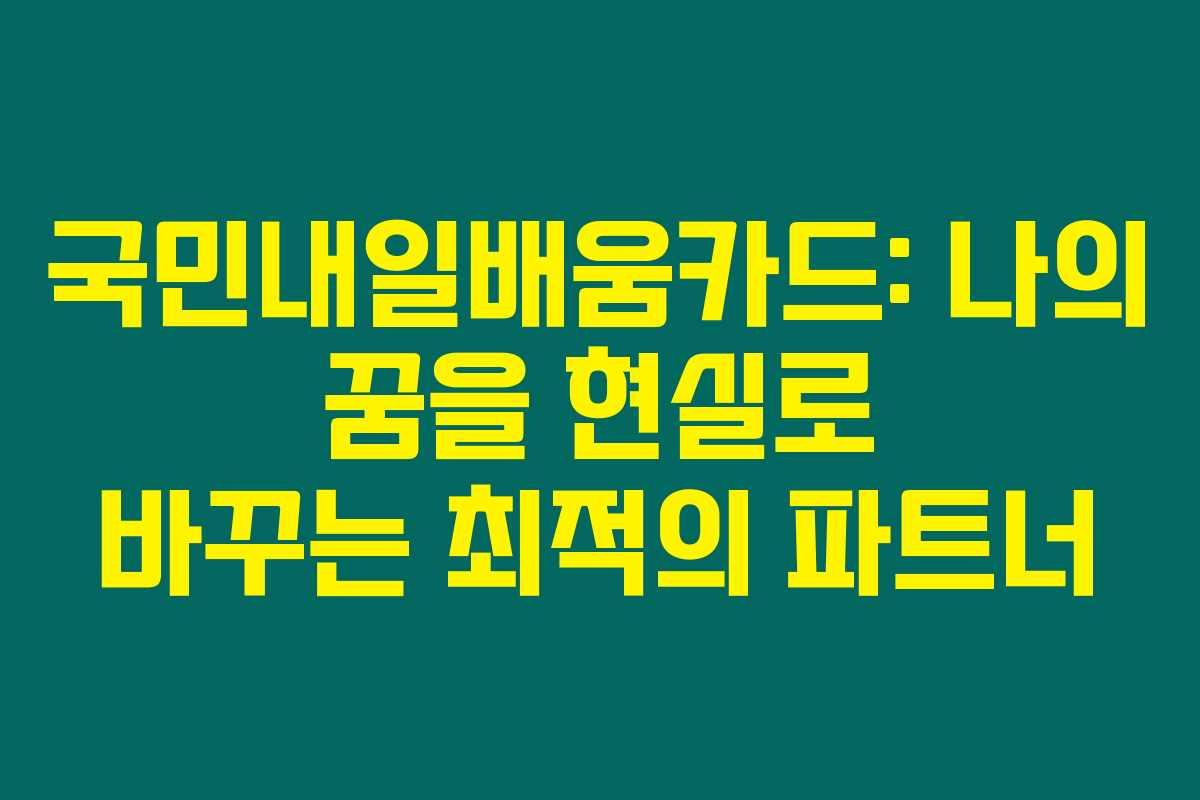 디스크립션: 제가 직접 경험해본 결과로는 국민내일배움카드가 취업 및 자기계발에 큰 도움이 되는 제도라는 것을 알았습니다. 이 글에서는 카드의 사용처와 사용법, 분실 시 재발급 방법에 대해 자세히 설명드리려 합니다.