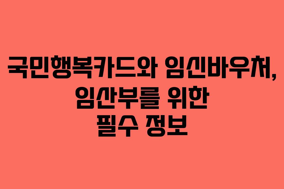국민행복카드는 정부에서 제공하는 각종 지원금을 카드 형태로 사용할 수 있도록 만들어진 것입니다. 이 카드를 통해 임산부와 영유아는 다양한 혜택을 누릴 수 있습니다.