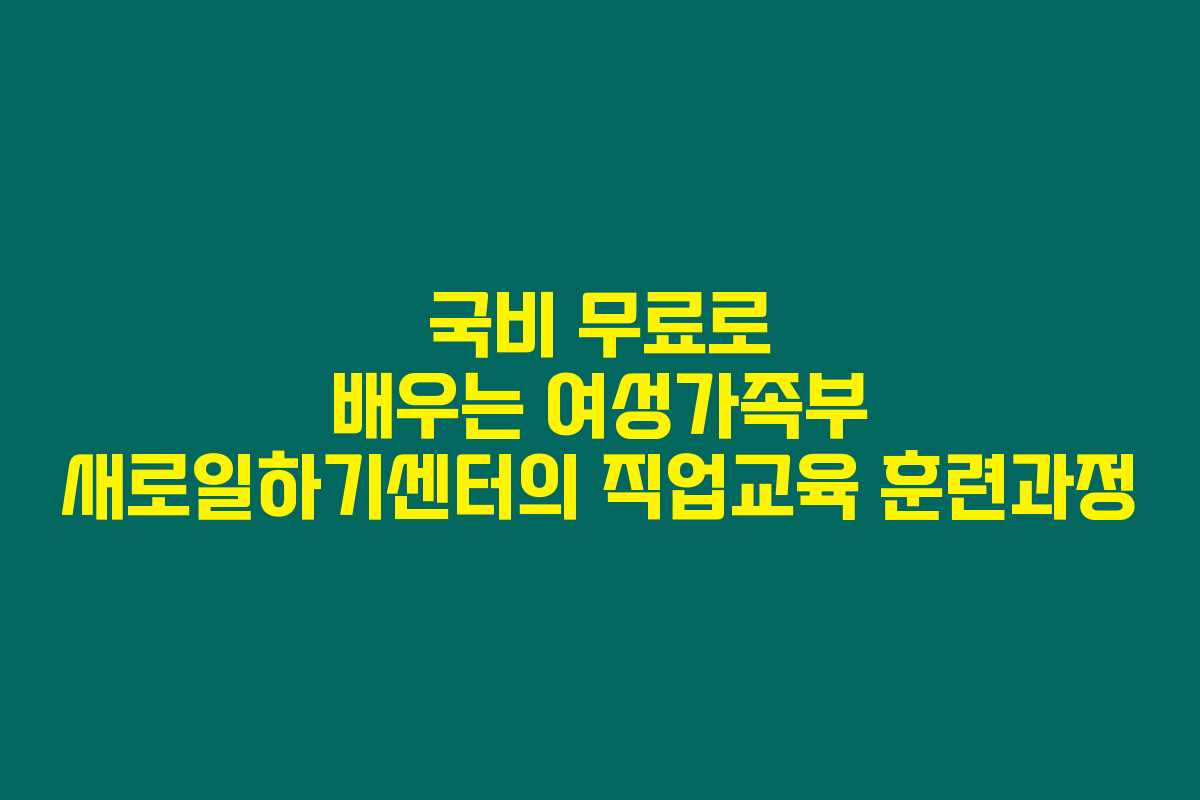 제가 알아본 바로는, 최근 세상은 여성의 경력개발 및 자립에 대한 관심이 높아지고 있으며, 이를 지원하기 위한 여성가족부의 새로일하기센터가 여러 직업교육훈련과정을 제공하고 있답니다. 전국적으로 운영되는 이 센터에서는 다양한 국비 무료 교육과정을 찾아볼 수 있으며, 아래를 읽어보시면 그 내용에 대한 자세한 정보를 알 수 있을 것입니다.