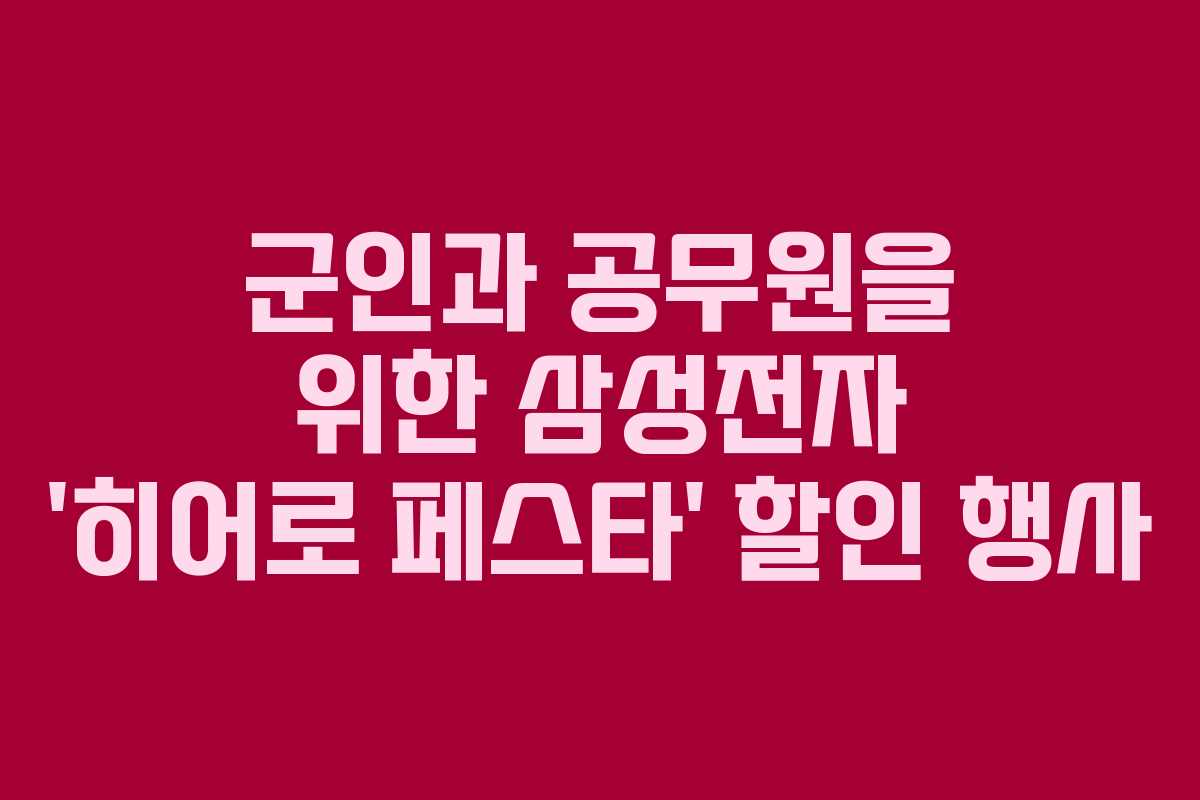 삼성전자가 군인, 경찰, 소방, 교정 공무원들을 위해 대규모 할인 행사인 ‘제2회 K-히어로 페스타’를 진행합니다. 이번 행사는 국가 안전을 위해 헌신하는 이들에게 특별한 혜택을 제공하기 위해 마련되었습니다.