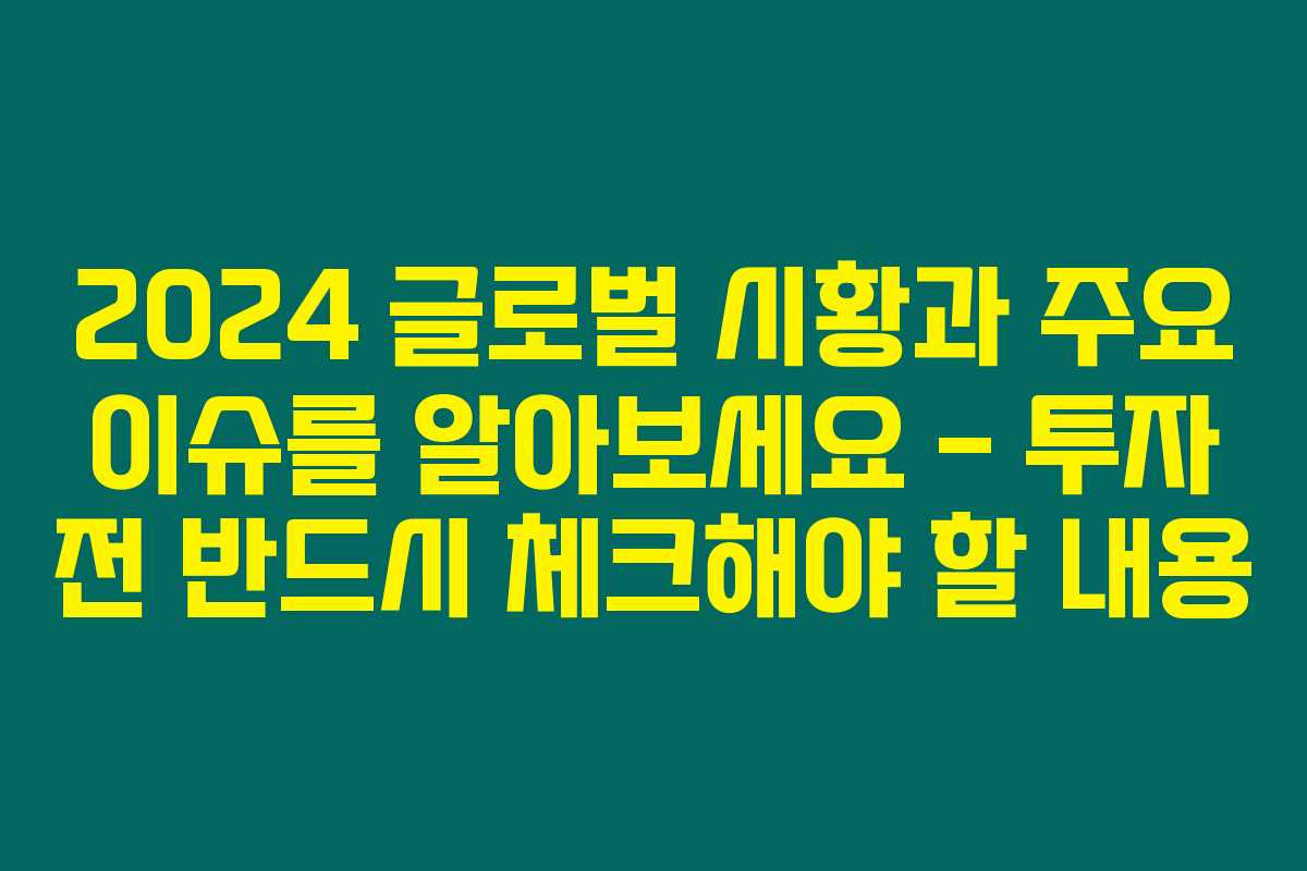 2024 글로벌 시황과 주요 이슈를 알아보세요 – 투자 전 반드시 체크해야 할 내용