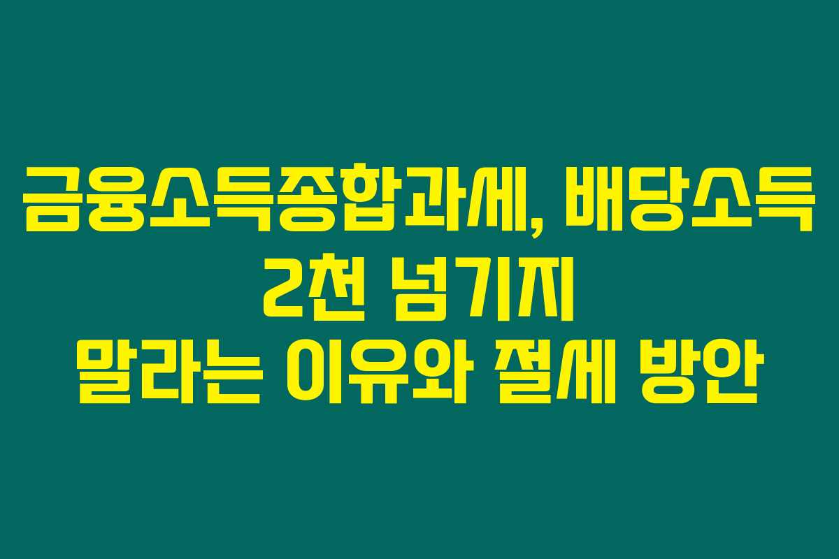 - 절세 방안: 배당소득 2천만 원 대응하기