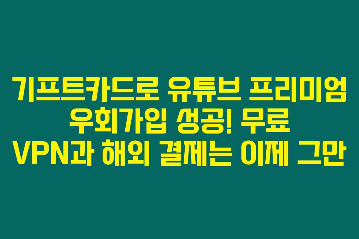 유튜브를 즐겨보는 분들이라면 광고 없는 자유로운 시청 경험을 원하실 텐데요. 그런데 월 19,500원의 요금이 부담스러워서 가입을 고민하게 되는 경우가 많아요. 아래를 읽어보시면, 무료 VPN과 해외 결제 수단이 실패로 돌아가도 기프트카드로 유튜브 프리미엄을 우회 가입한 방법에 대해 자세히 알려드릴게요.