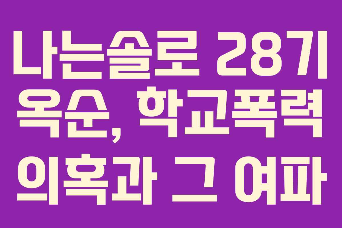 최근 ENA·SBS Plus의 예능 프로그램 ‘나는 솔로’ 28기 출연자 옥순에 대한 학교폭력 의혹이 제기되면서 방송가와 온라인 커뮤니티가 큰 논란에 휘말리고 있습니다. 이 글에서는 해당 의혹의 시작, 현재 상황, 그리고 대중의 반응 등을 살펴보겠습니다.