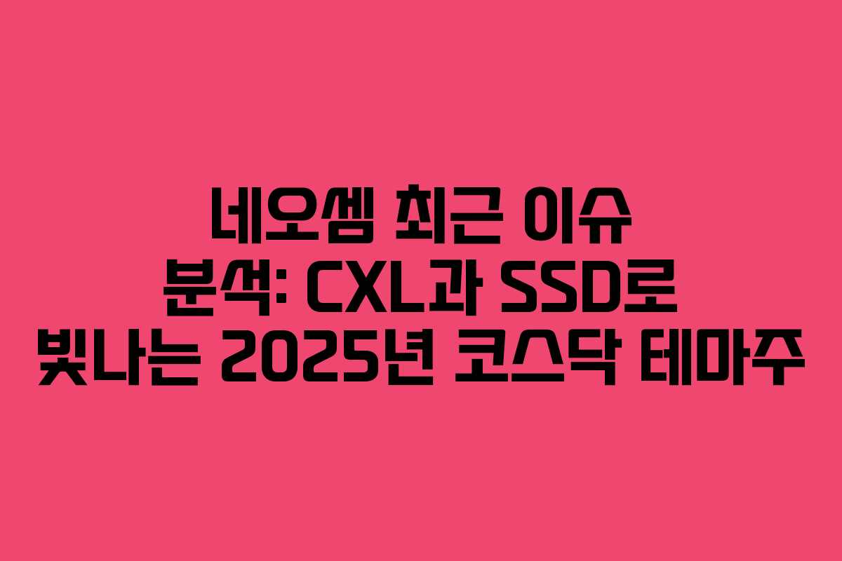 네오셈은 2025년 한국 코스닥 시장에서 주목받는 기업으로, 차세대 메모리 인터페이스 기술인 CXL(Compute Express Link)과 SSD(Solid State Drive) 검사 장비를 통해 반도체 업계에서 큰 주목을 받고 있습니다. 이번 블로그에서는 네오셈의 최근 이슈와 재무 상황, 그리고 2025년 전망을 다루어 투자자들에게 유용한 정보를 제공하고자 합니다.