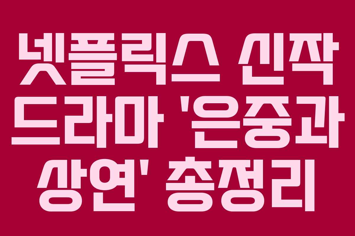 넷플릭스 신작 드라마 '은중과 상연' 총정리