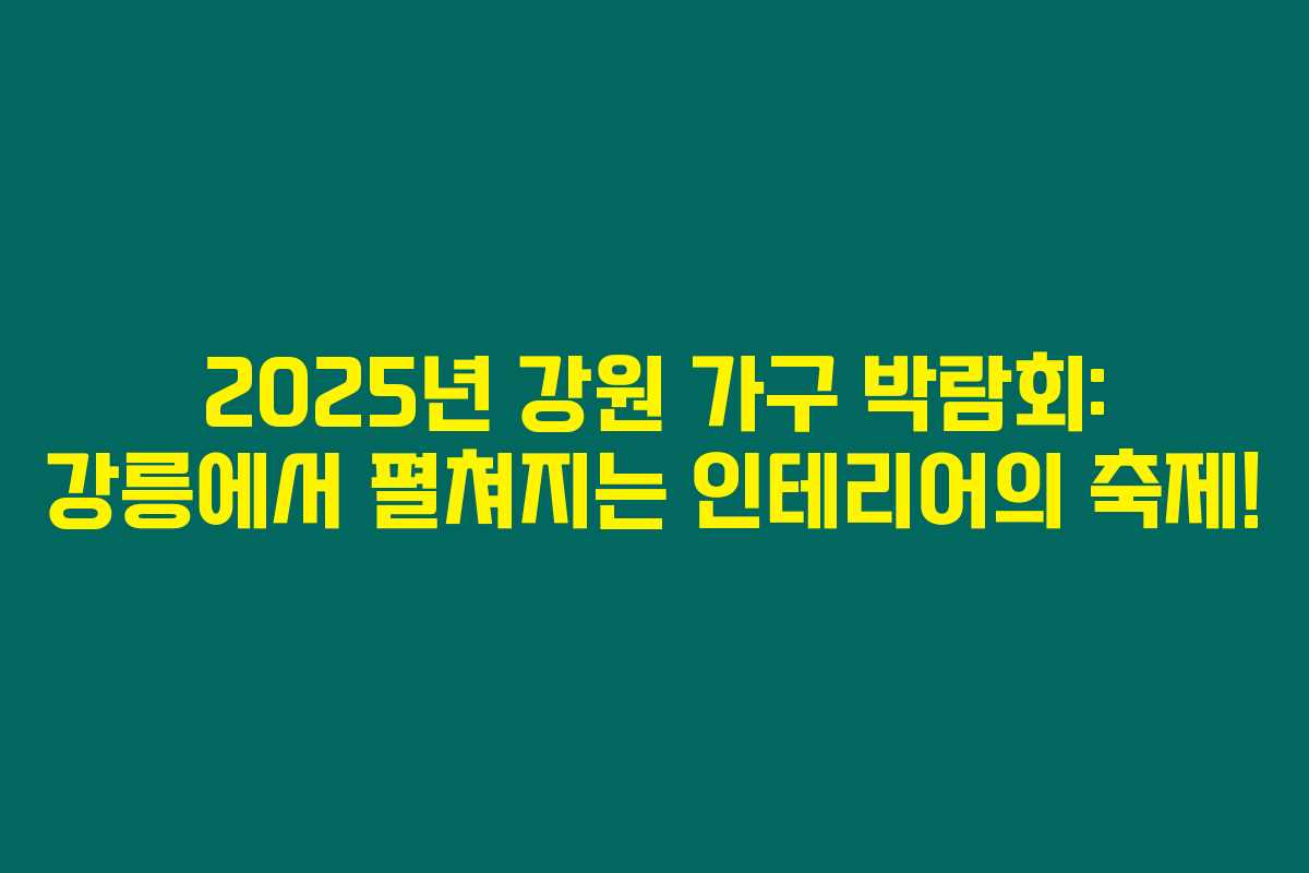 2025년 4월, 강원도의 아름다운 강릉에서 한껏 독창적인 가구와 인테리어 아이디어가 펼쳐지는 특별한 기회가 찾아옵니다. 강원 가구 박람회는 단순한 전시회를 넘어, 여러분의 공간을 더욱 멋지게 꾸밀 수 있는 모든 것들이 한자리에 모입니다. 아래를 읽어보시면 이 박람회에 관한 필수 정보와 함께 특별한 즐길거리에 대해 알게 되실 거예요!