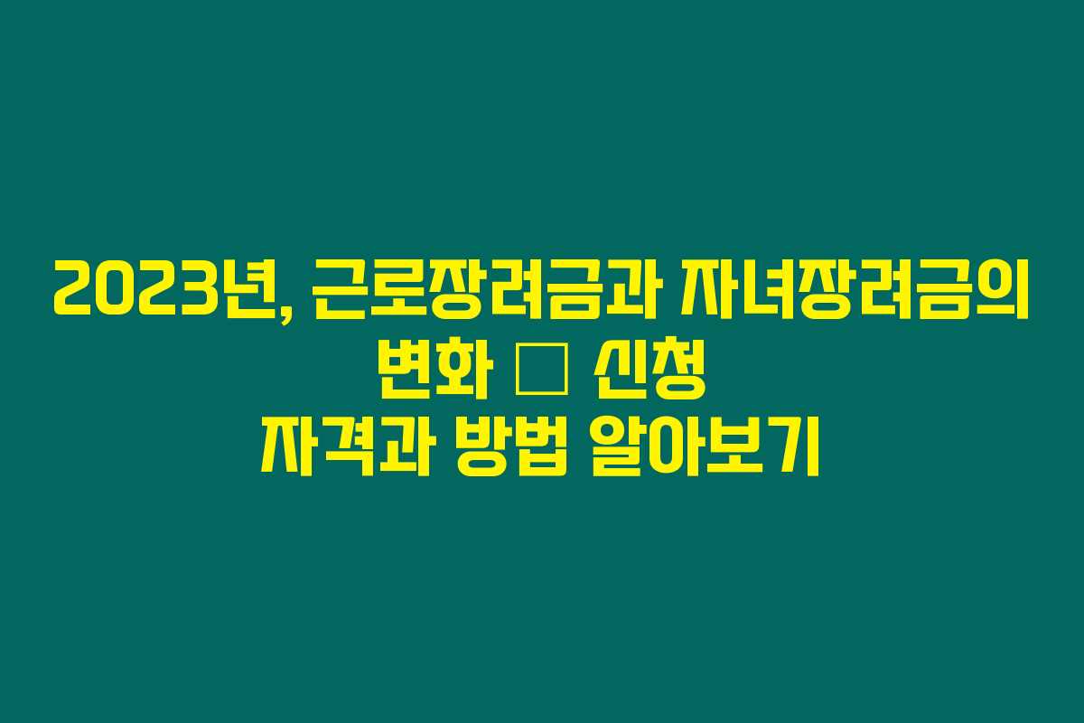 제가 직접 경험해본 바로는, 2023년부터 근로장려금과 자녀장려금의 신청 자격과 지급 내용에 많은 변화가 있었습니다. 특히 소득 기준이 상향되어 더 많은 국민들이 혜택을 받을 수 있게 되었죠. 아래를 읽어보시면 이번에 바뀐 각종 내용과 신청 방법에 대한 정보를 쉽게 정리할 수 있을 거예요.