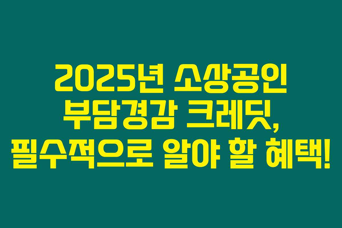 2025년 소상공인 부담경감 크레딧, 필수적으로 알야 할 혜택!