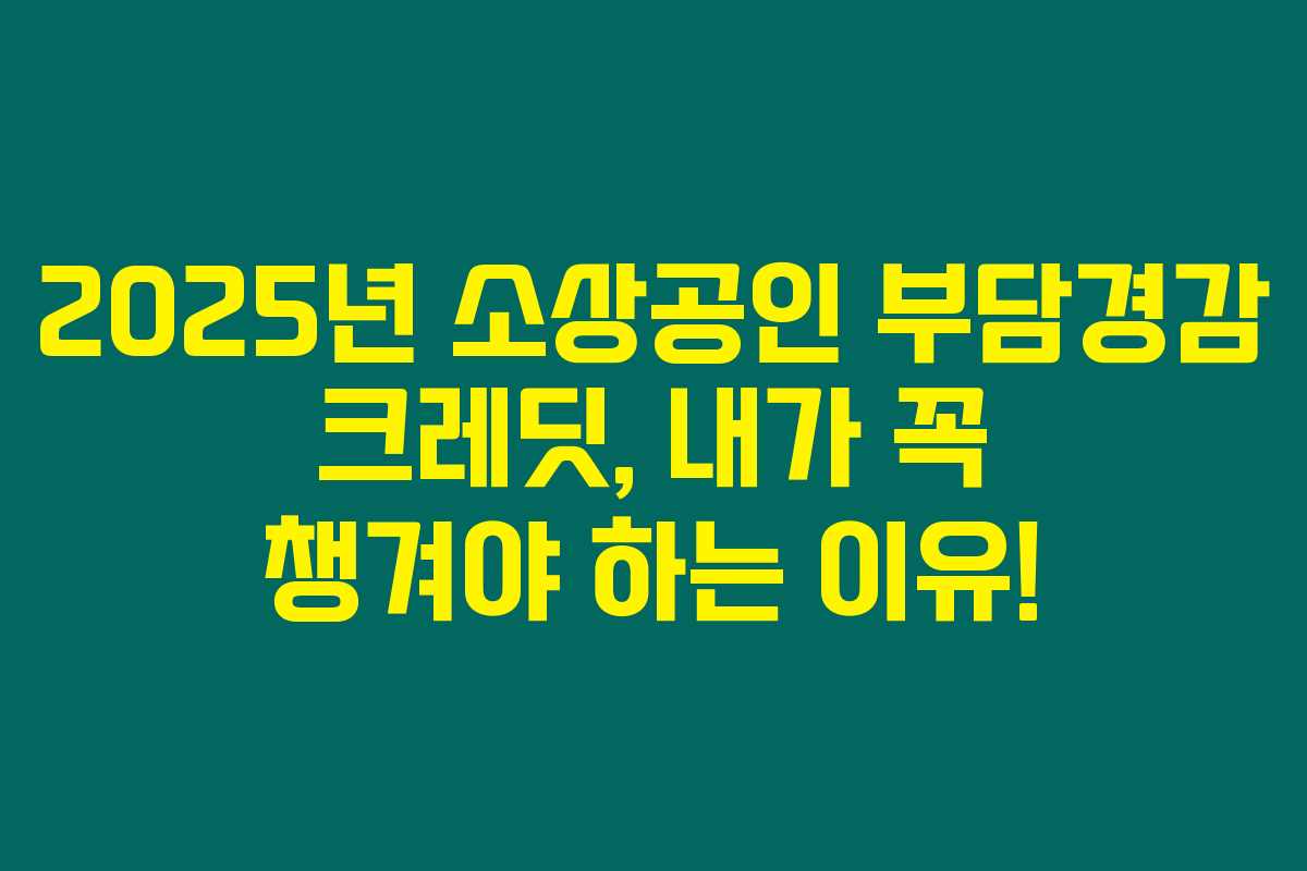 2025년 소상공인 부담경감 크레딧은 작은 사업체에게 큰 도움이 될 법한 정책이에요. 무조건 국가의 지원은 잘 챙기는 게 중요하잖아요? 빠르게 신청하고 나만의 혜택을 누리세요!