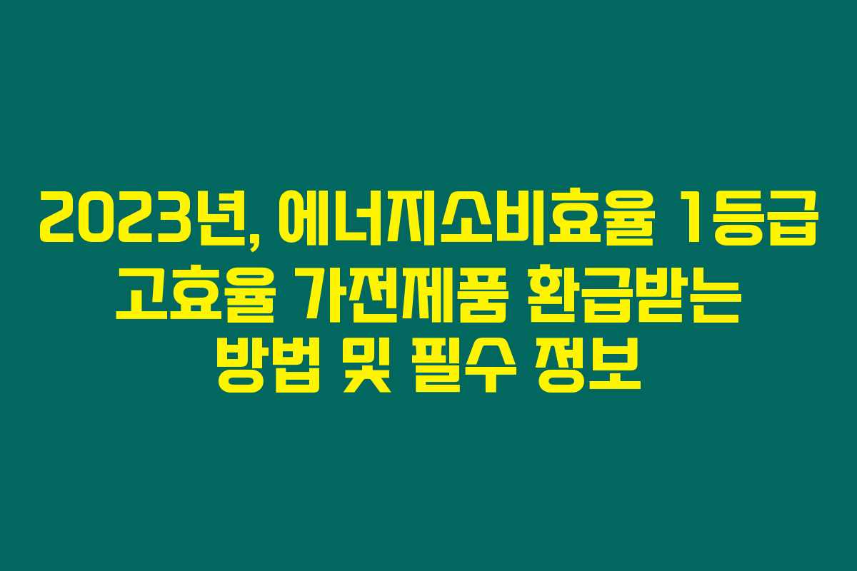 제가 직접 체크해본 바로는 2023년에도 에너지소비효율 1등급 고효율 가전제품 환급 프로그램이 많은 소비자들에게 유용한 기회를 제공하고 있습니다. 이 프로그램은 가전제품 구매 시 비용의 일부를 환급받는 제도로, 일정 조건을 충족할 경우 최대 30만 원까지 지원받을 수 있습니다. 아래를 읽어보시면 이 프로그램의 신청 방법과 유의사항을 상세히 안내드리겠습니다.