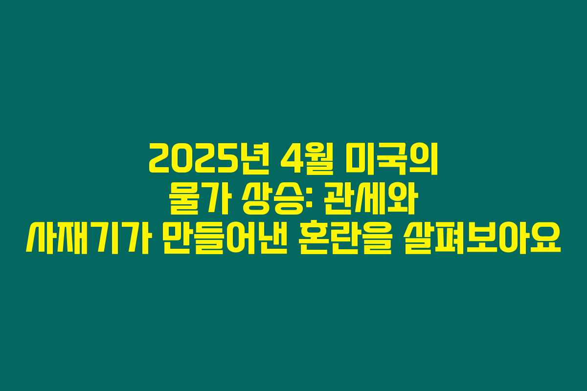 2025년 4월의 미국 물가 상황은 관세와 사재기의 복잡한 연관 속에서 불안정성을 보이고 있습니다. 지금은 물가에 대한 걱정과 준비가 필요한 시점이에요. 여러분은 이 물가 상승 상황에 어떻게 대응할 생각인가요? 함께 이 이야기를 나누어 보아요!