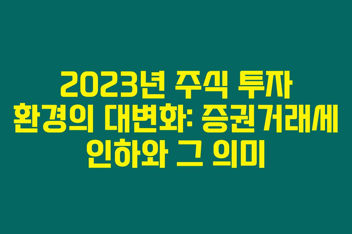 2023년 주식 투자 환경의 대변화: 증권거래세 인하와 그 의미