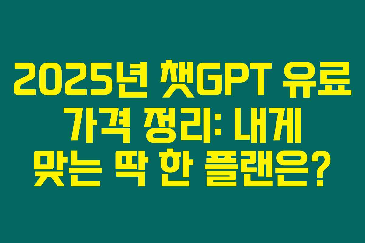 2025년 챗GPT 유료 가격 정리: 내게 맞는 딱 한 플랜은?