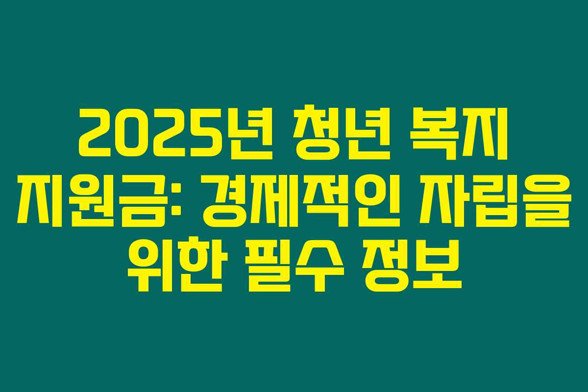 2025년 청년 복지 지원금: 경제적인 자립을 위한 필수 정보