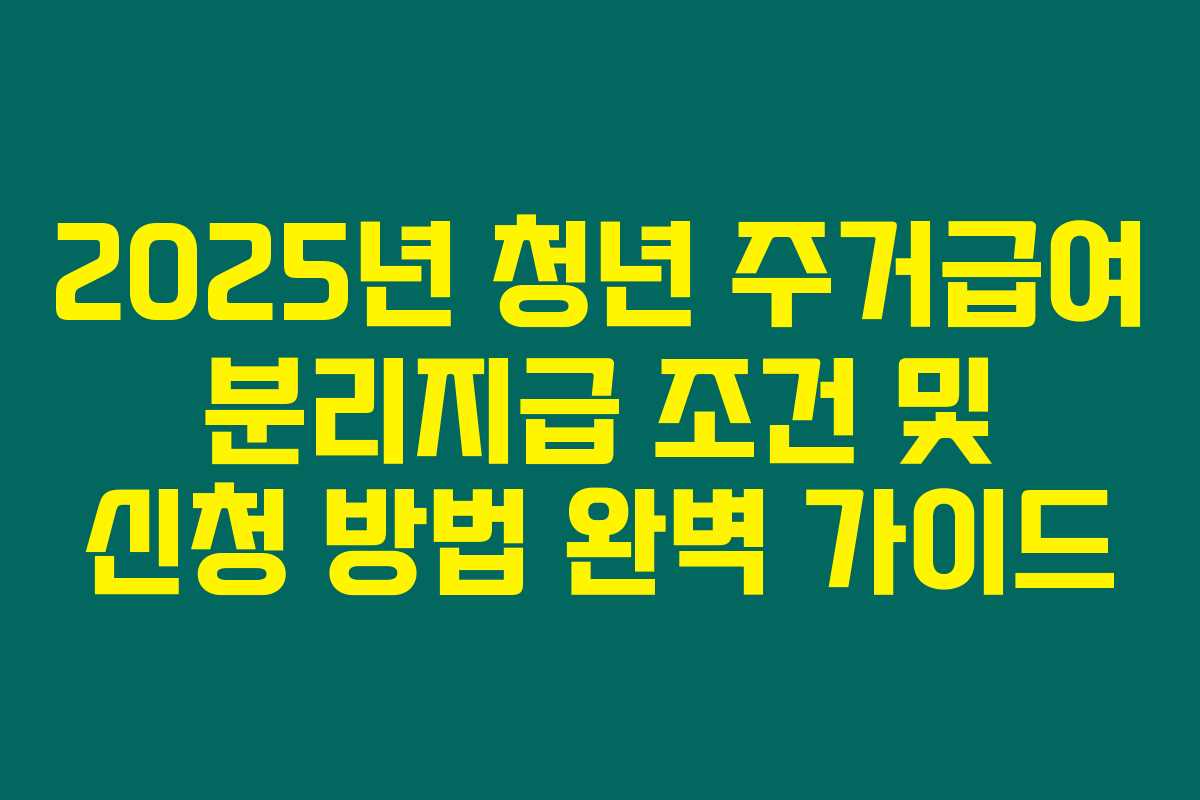 2025년 청년 주거급여 분리지급 조건 및 신청 방법 완벽 가이드