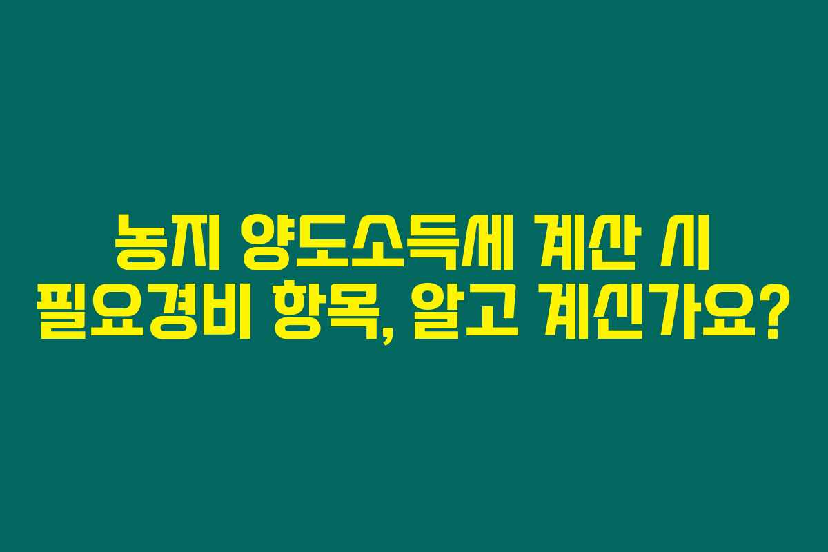 제가 판단하기로는, 농지 양도소득세 계산 시 적용되는 ‘필요경비’ 항목에 대해 상세히 알려드립니다. 농지를 양도할 때, 소득세의 부담을 줄이기 위해서는 필요경비 항목을 정확하게 이해하는 것이 중요합니다. 농지의 경우에는 일반 부동산과는 다른 특수한 필요경비 항목이 존재하기 때문에, 이에 대한 이해가 더욱 필요하답니다.
