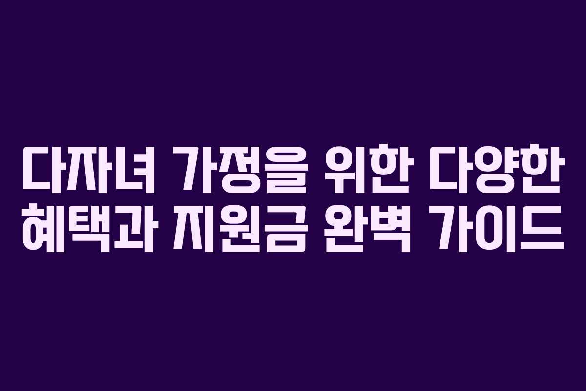 다자녀 가정은 현대 사회에서 점점 더 많은 주목을 받고 있으며, 이들을 지원하기 위한 다양한 혜택과 지원금이 존재합니다. 이러한 지원은 경제적 부담을 덜어주고, 자녀 양육 환경을 개선하는 데 큰 역할을 합니다. 이번 가이드에서는 다자녀 가정을 위한 혜택과 지원금에 대해 자세히 알아보겠습니다.