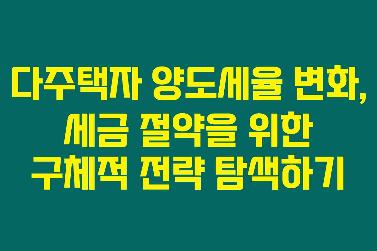 다주택자 양도세율 변화, 세금 절약을 위한 구체적 전략 탐색하기