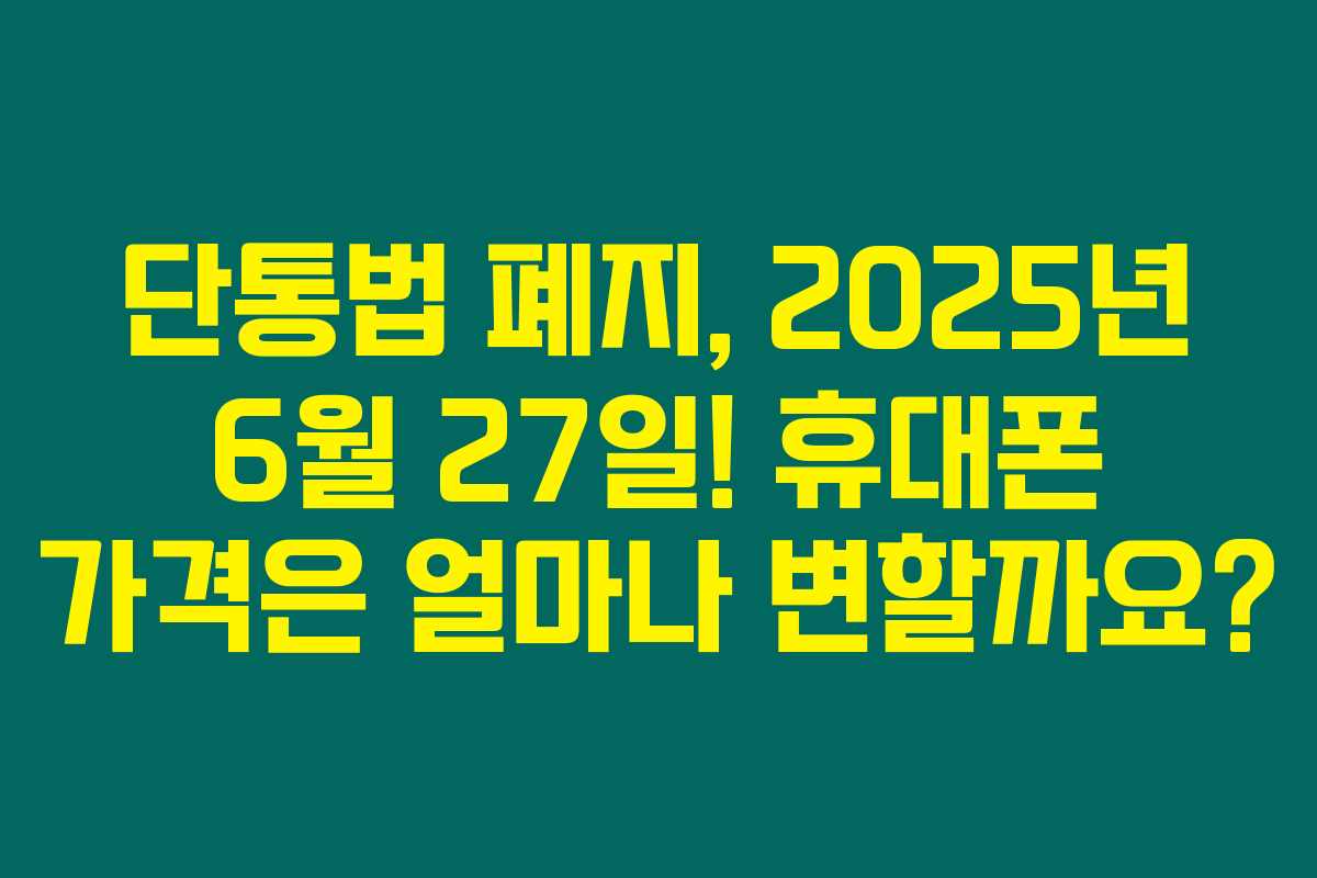 10년 넘게 우리의 휴대폰 시장을 지켜온 단통법이 드디어 2025년 6월 27일에 폐지된다는 소식입니다. 단통법 때문에 더 이상 높은 가격에 휴대폰을 사야 할 이유가 없어질까요? 이 글에서는 단통법 폐지로 인한 변화와 휴대폰 가격에 대한 예측을 자세히 알아보겠습니다. 만약 새 휴대폰 구매를 고려하고 계신다면 아래를 꼭 확인해 주세요!