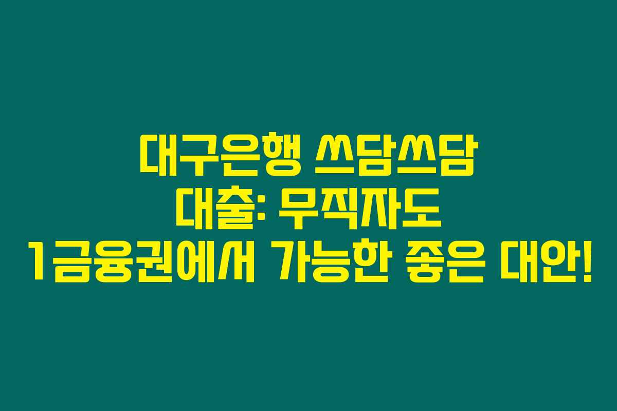 대구은행 쓰담쓰담 대출: 무직자도 1금융권에서 가능한 좋은 대안!