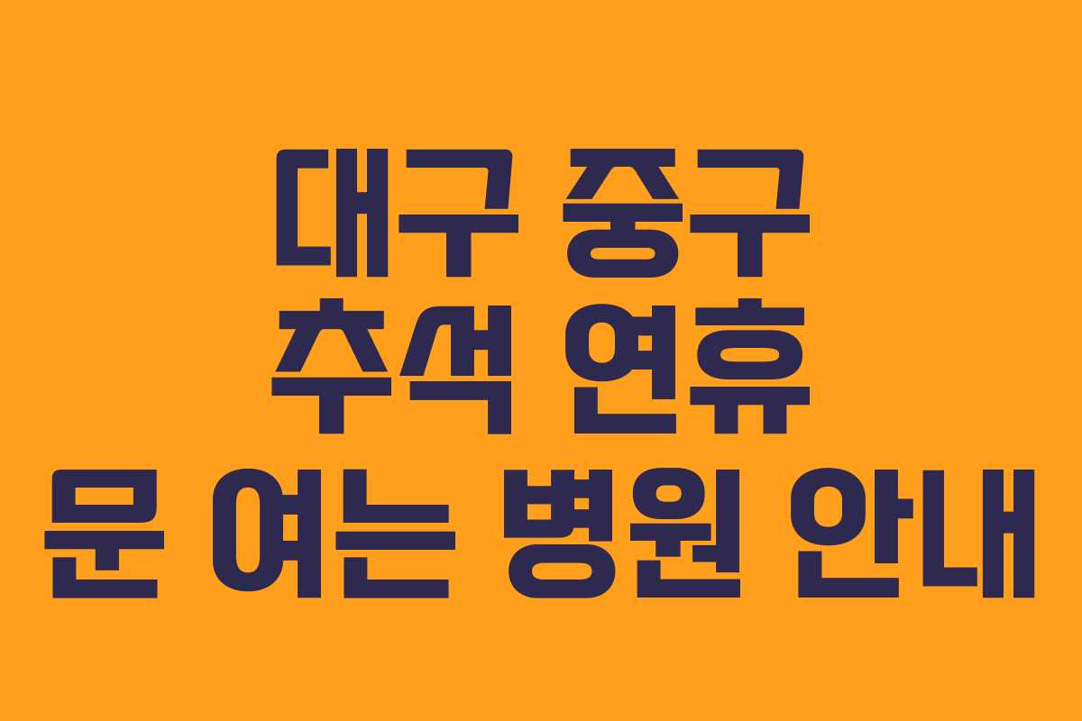 추석 연휴 동안 대구 중구에서 진료를 받을 수 있는 병원을 알아보겠습니다. 다양한 진료과목을 제공하는 병원들이 문을 열어 여러분의 건강을 지켜줍니다.