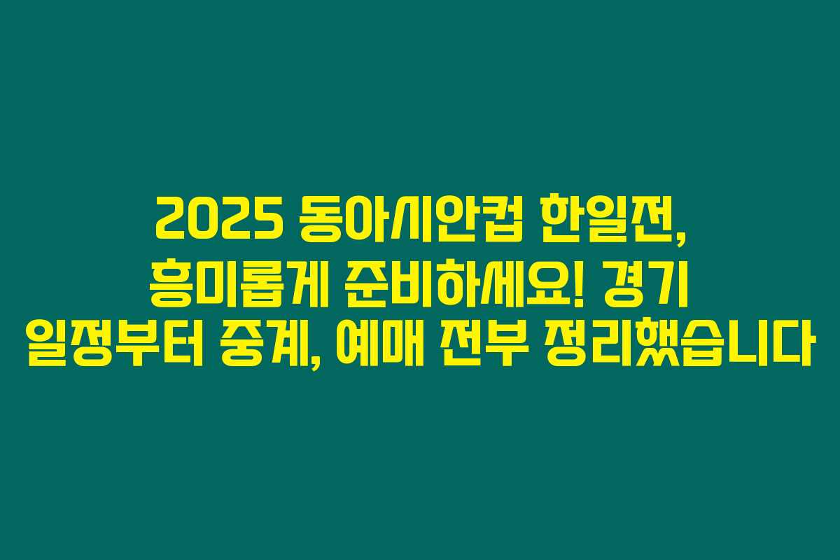 2025 동아시안컵 한일전, 흥미롭게 준비하세요! 경기 일정부터 중계, 예매 전부 정리했습니다