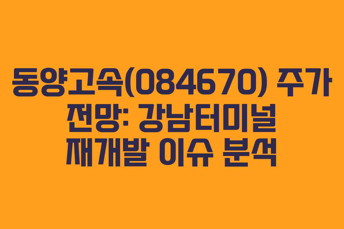 동양고속(084670) 주가 전망: 강남터미널 재개발 이슈 분석
