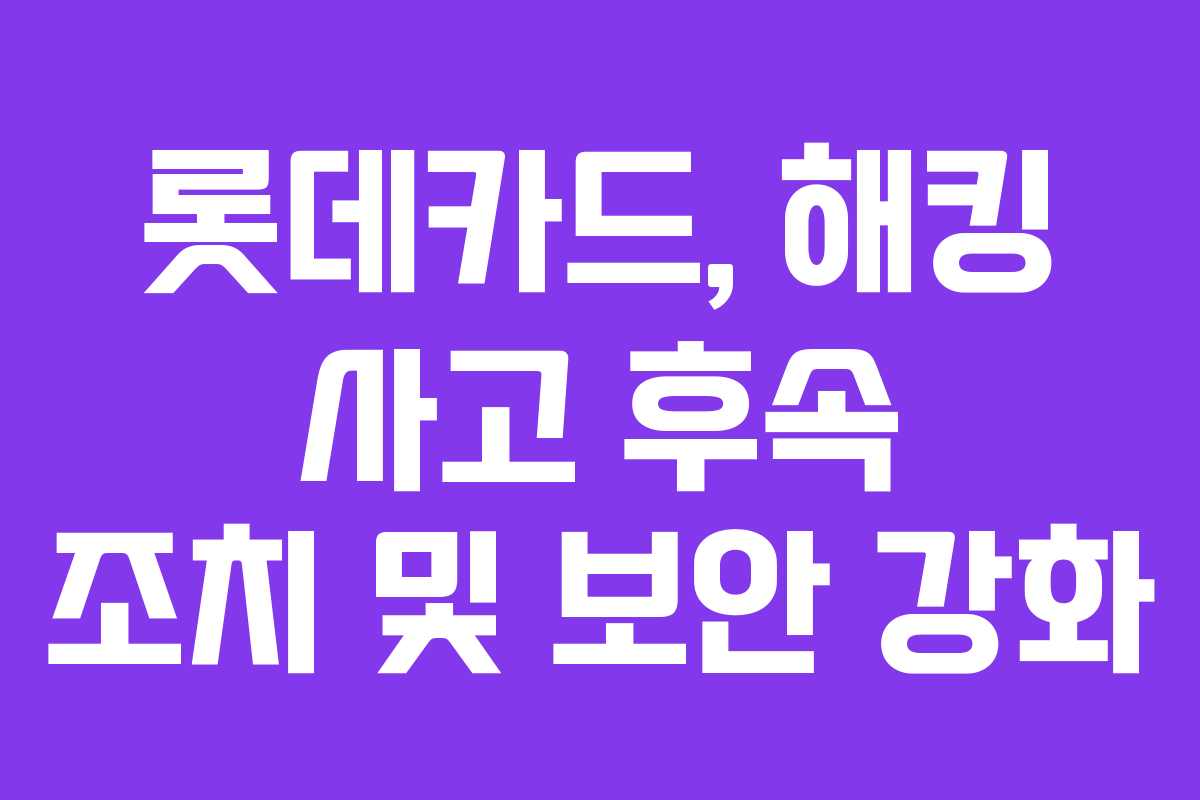 최근 롯데카드에서 발생한 사이버 침해 사고와 관련하여, 고객의 불안을 최소화하고 피해를 방지하기 위한 여러 후속 조치를 시행하고 있습니다. 이번 조치는 고객 신뢰 회복을 위한 노력의 일환으로, 다양한 보안 강화와 고객 서비스 개선이 포함되어 있습니다.