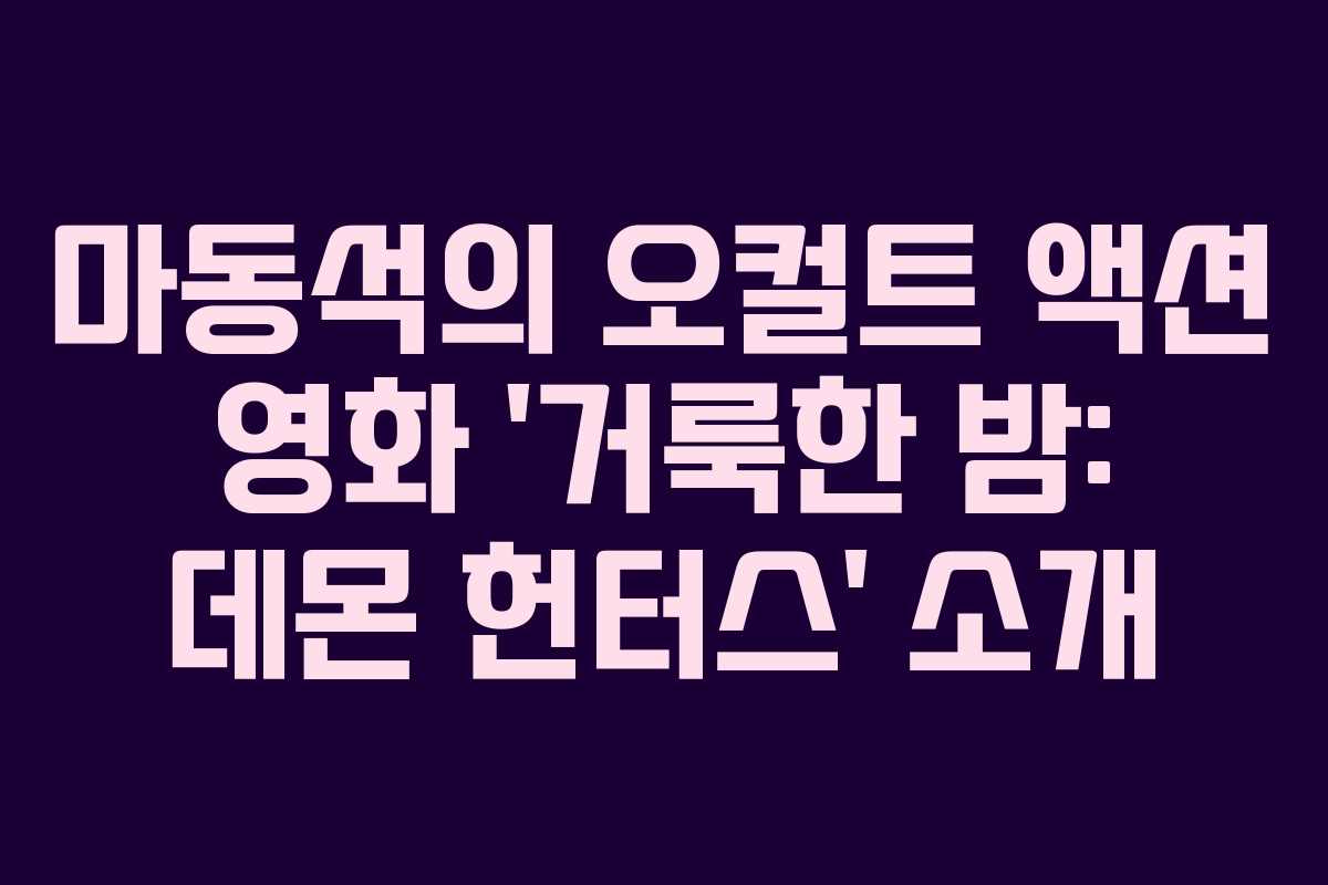 마동석이 주연으로 출연하는 영화 ‘거룩한 밤: 데몬 헌터스’에서 악마를 사냥하는 이야기가 펼쳐집니다. 이 영화는 악을 숭배하는 집단에 맞서는 ‘거룩한 밤’ 팀의 활약을 그린 오컬트 액션 장르로, 관객들의 기대를 모으고 있습니다.