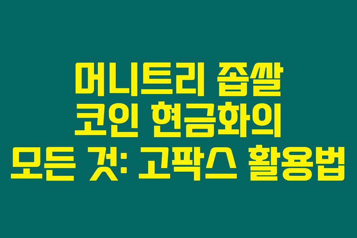 머니트리의 좁쌀 코인을 현금화하는 방법에 대한 고민, 사실 많은 분들이 고민하실 것 같아요. 이번 포스팅에서는 고팍스를 통해 어떻게 쉽게 현금화할 수 있는지, 그리고 어떤 전략을 통해 더 많은 혜택을 누릴 수 있는지를 팍팍 알려드릴게요. 아래를 읽어보시면, 어렵다고 생각했던 현금화 과정이 한결 쉬워질 거예요!