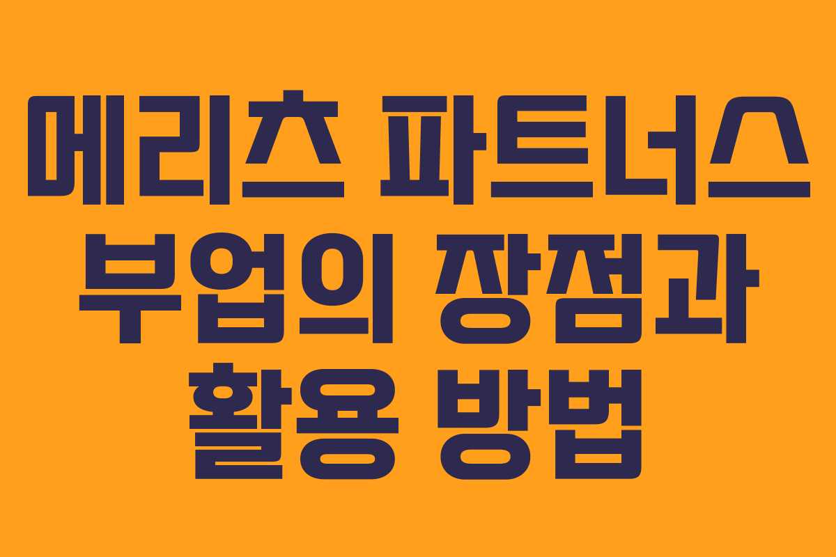 메리츠 파트너스 부업의 장점