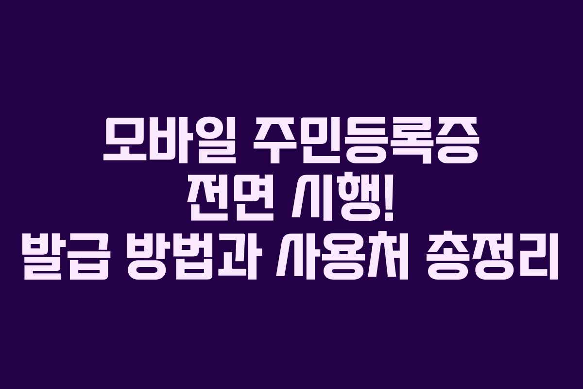2025년부터 모바일 주민등록증이 전면 시행됩니다. 이로 인해 17세 이상의 대한민국 국민은 스마트폰을 통해 간편하게 신분 확인을 할 수 있습니다. 이번 글에서는 모바일 주민등록증의 발급 방법과 사용처, 보안 사항 등을 정리해 보겠습니다.