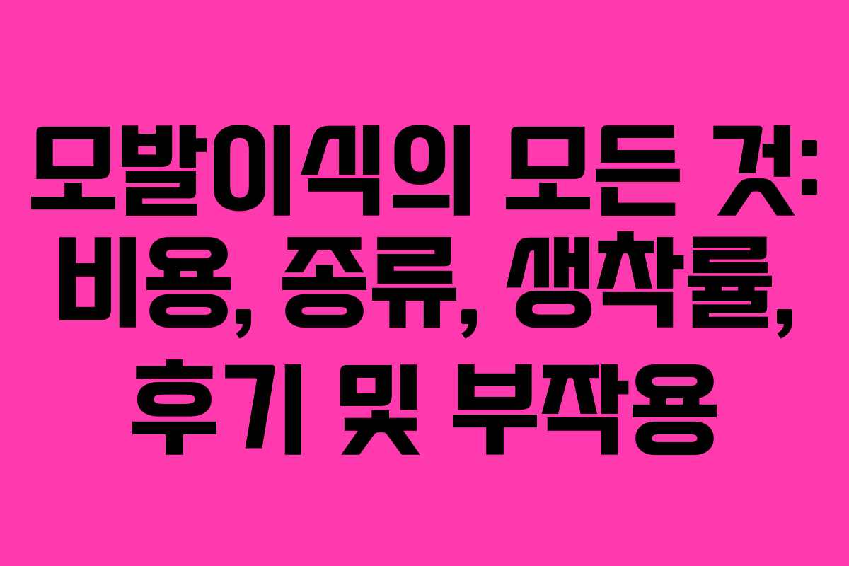 탈모는 남녀를 불문하고 많은 사람들이 고민하는 문제입니다. 이에 따라 모발이식은 다양한 헤어스타일을 원하는 이들에게 매력적인 선택지로 자리 잡고 있습니다. 하지만 모발이식을 결심하기 전에는 여러 가지 정보를 꼼꼼히 확인하는 것이 중요합니다. 이번 글에서는 모발이식의 비용, 종류, 생착률, 솔직한 후기, 부작용 등을 총정리해 보겠습니다.