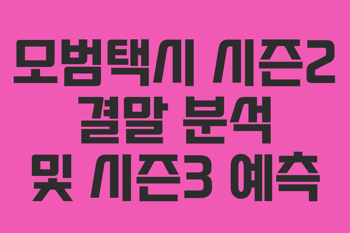 모범택시 시즌2 결말 분석 및 시즌3 예측