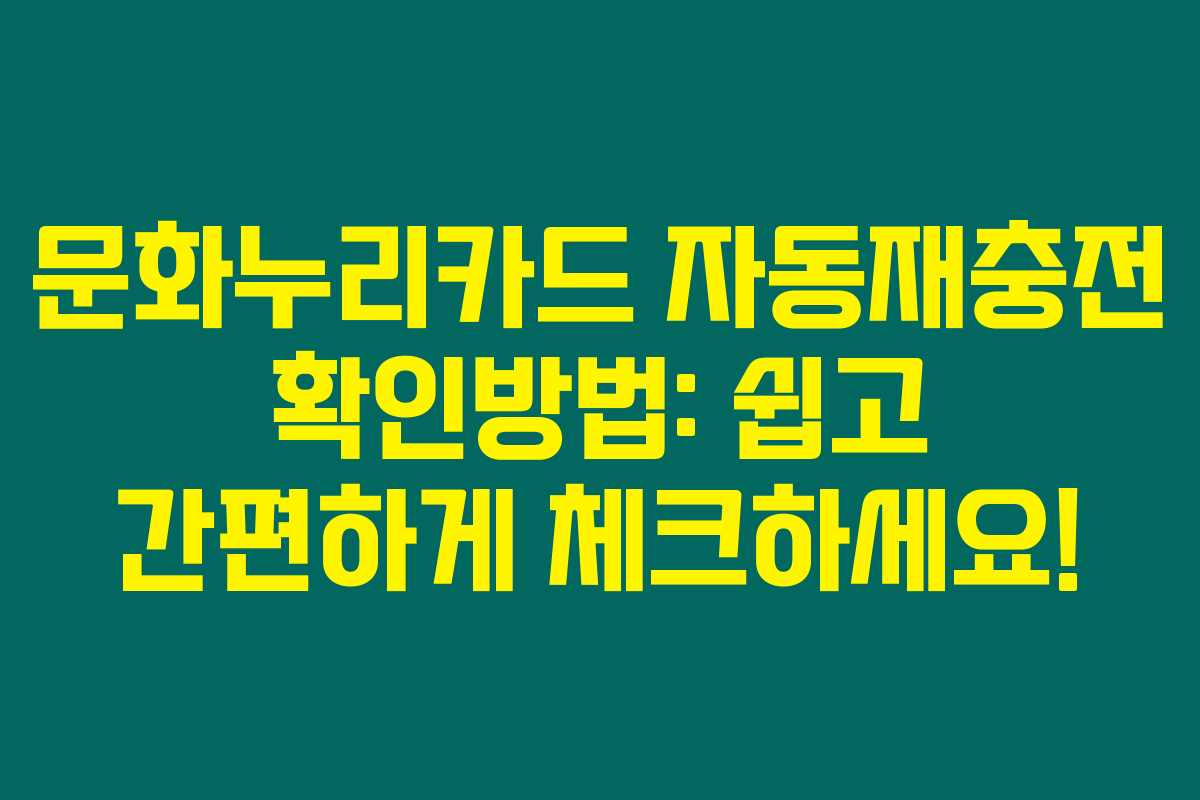제가 알아본 바로는 많은 분들이 문화누리카드를 통해 문화생활을 보다 풍요롭게 즐기고 계십니다. 특히 올해부터 도입된 자동재충전 시스템 덕분에 사용 편의성이 크게 향상되었어요. 하지만 이 제도가 제대로 작동하는지 확인하는 방법도 필요하겠지요? 아래를 읽어보시면 문화누리카드 자동재충전 여부를 확인하는 구체적인 방법에 대해 알아보실 수 있습니다.