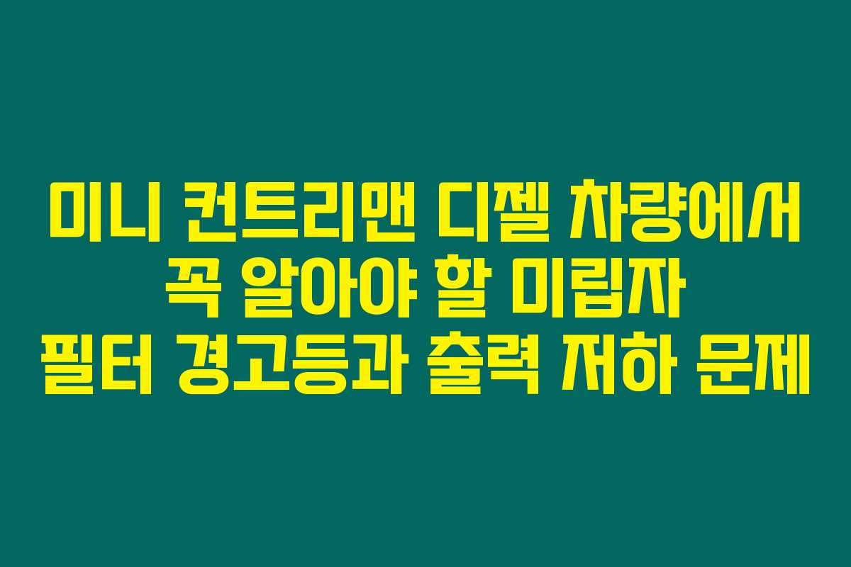 미니 컨트리맨 디젤 차량을 운전하고 있는데 미립자 필터 경고등이 점등되고 출력 저하를 겪고 계신가요? 이 문제가 반복적으로 발생한다면 아래를 읽어보시면 문제 해결의 실마리를 얻을 수 있습니다.
