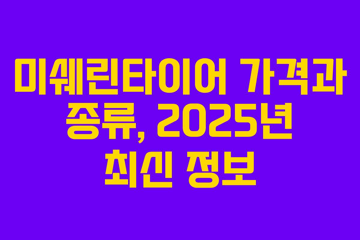 미쉐린타이어 가격과 종류, 2025년 최신 정보