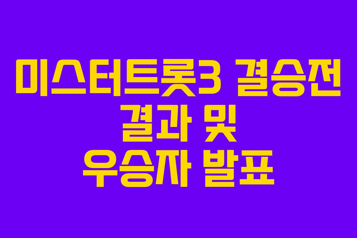 TV조선의 인기 트롯 오디션 프로그램인 미스터트롯3의 결승전이 드디어 막을 내렸습니다. 이번 최종회에서는 인생곡 미션을 통해 최종 순위가 가려졌고, 팬덤의 힘으로 이변이 일어났습니다. 결승전은 19.1%의 시청률을 기록하며 프로그램의 최고 시청률을 경신했습니다.