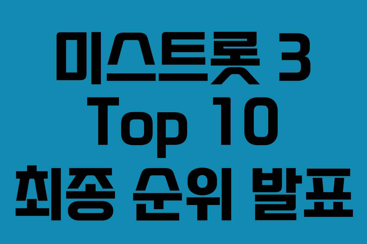 미스트롯 3의 Top 10 최종 순위가 드디어 발표되었습니다. 총 14명의 참가자 중 4명이 탈락하고, 10명이 준결승으로 진출하게 되었습니다. 이번 글에서는 준결승 진출자와 탈락자, 대국민 응원 투표 순위에 대해 자세히 알아보겠습니다.