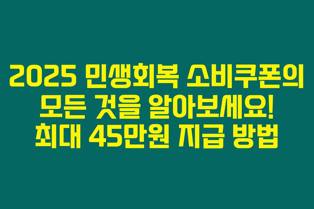 2025년은 물가 부담이 심해진 시점에서 정부가 민생 회복을 위해 소비쿠폰 제도를 도입했습니다. 최대 45만원까지 지급받을 수 있는 이번 소비쿠폰에 대한 모든 정보를 아래를 읽어보시면 자세히 알게 될 거예요. 누가, 어떻게 신청할 수 있는지, 그리고 추가 지원금은 무엇인지 함께 살펴봐요!