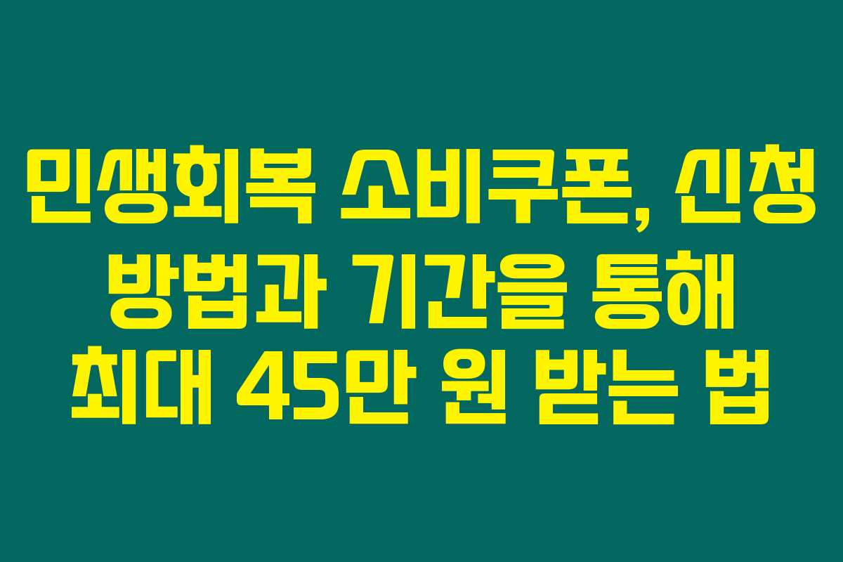 민생회복 소비쿠폰 제도가 국민들에게 실질적인 지원이 되길 바라며, 꼭 놓치지 말고 신청하시길 바랍니다. 최대 45만 원이라는 막대한 지원 혜택을 누리실 수 있도록 미리 필요한 절차를 잘 준비해보세요.