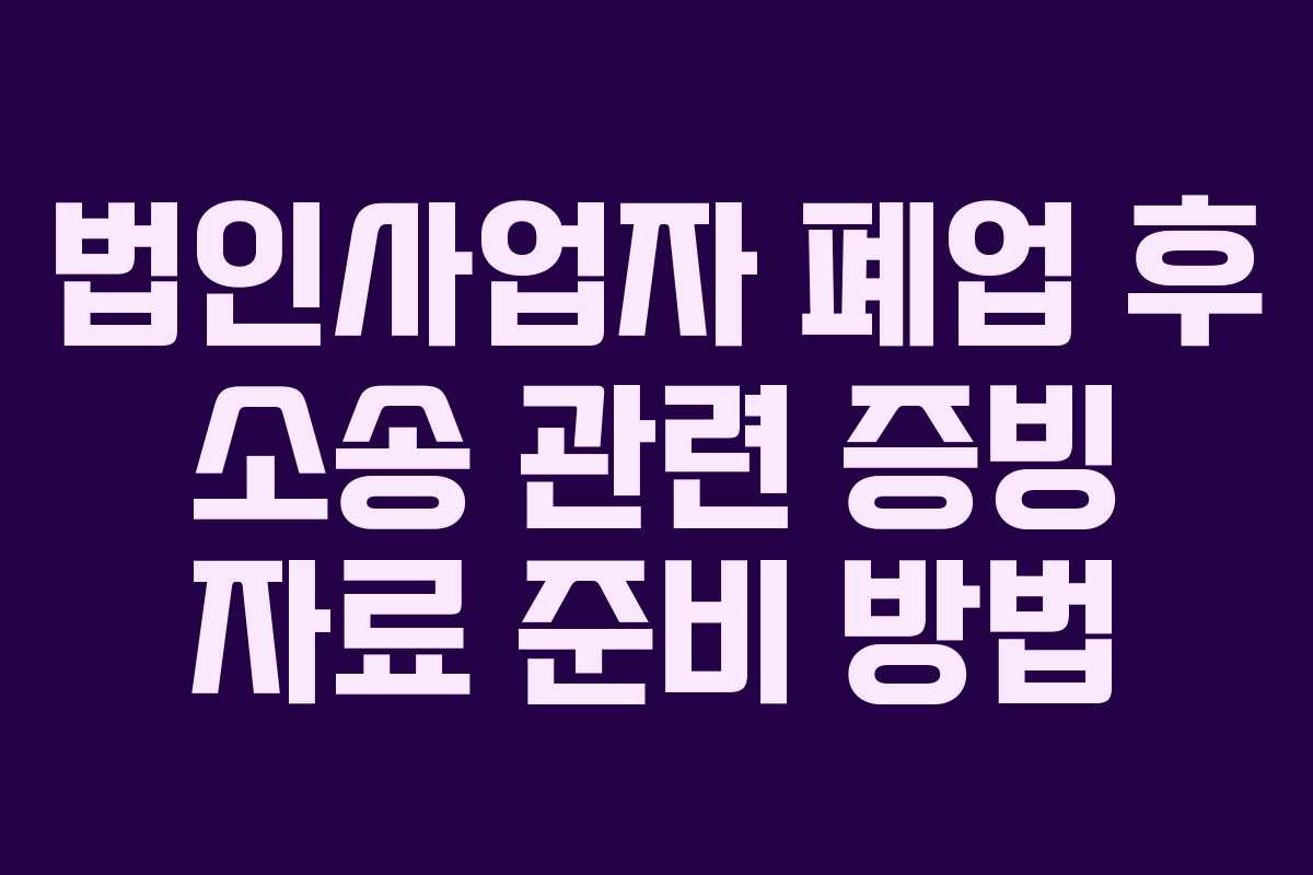 법인사업자를 폐업한 후에도 소송이 발생할 수 있으며, 이때 필요한 증빙 자료를 준비하는 것은 매우 중요합니다. 이번 글에서는 법인사업자 폐업 후 소송에 대처하는 방법과 필요한 자료를 준비하는 방법에 대해 안내하겠습니다.