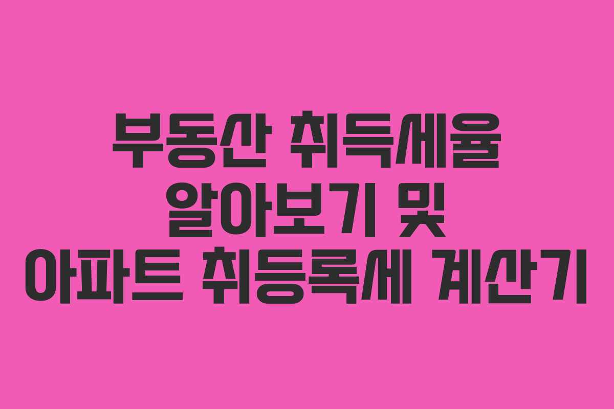 부동산 시장의 변화와 함께 많은 사람들의 관심이 부동산 취득세에 쏠리고 있습니다. 아파트를 구매하려는 분들은 부동산 취득세율을 정확히 이해하고, 각종 세금 및 부대 비용을 고려해야 합니다. 이번 글에서는 부동산 취득세율과 이를 계산할 수 있는 방법에 대해 자세히 알아보겠습니다.